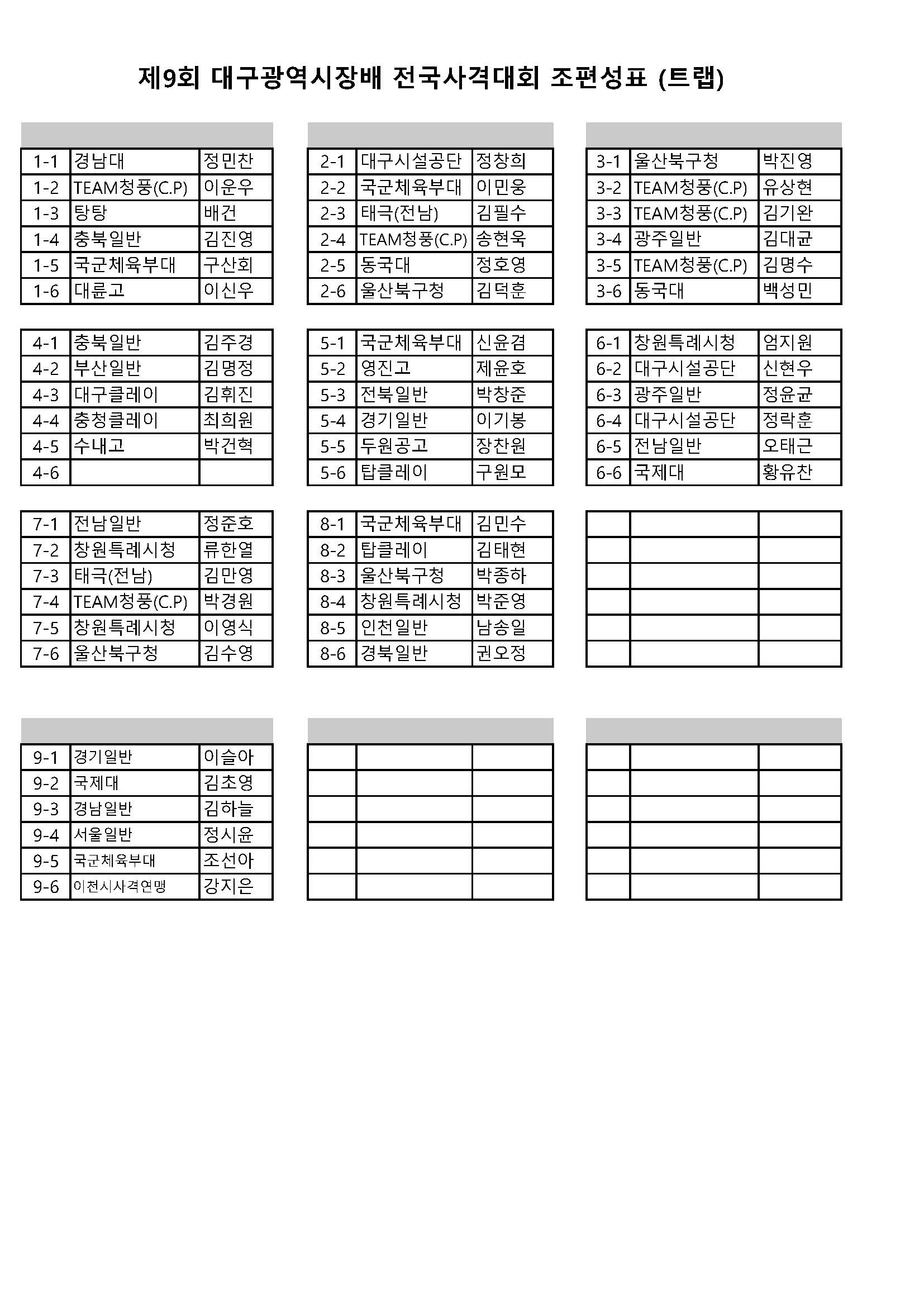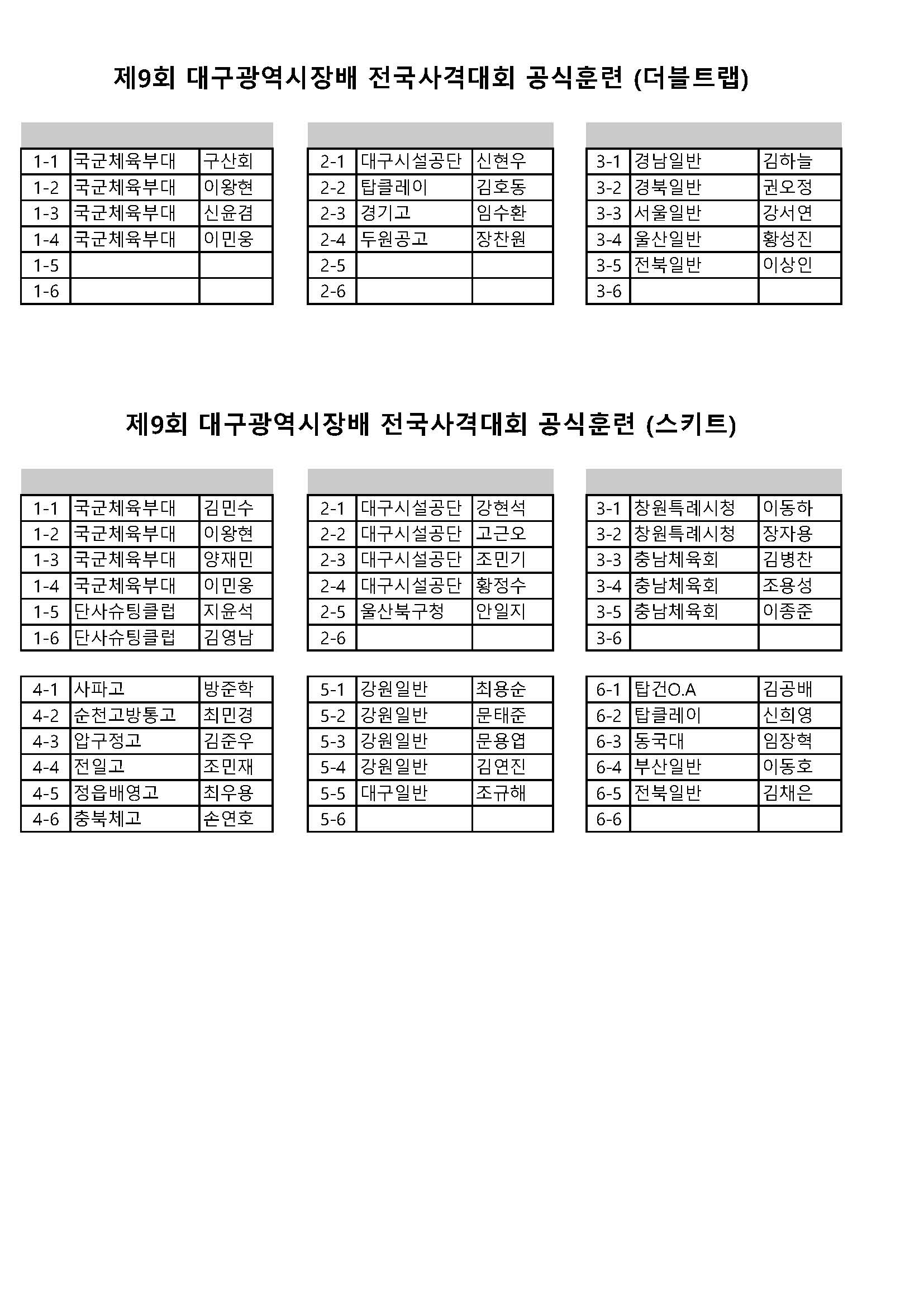 | Á¦¸ñ | Á¦9ȸ ´ë±¸±¤¿ª½ÃÀå¹è Àü±¹»ç°Ý´ëȸ »êźÃÑ Á¶Æí¼ºÇ¥(°ø½ÄÈÆ·Ã Æ÷ÇÔ) °øÁö | ||||