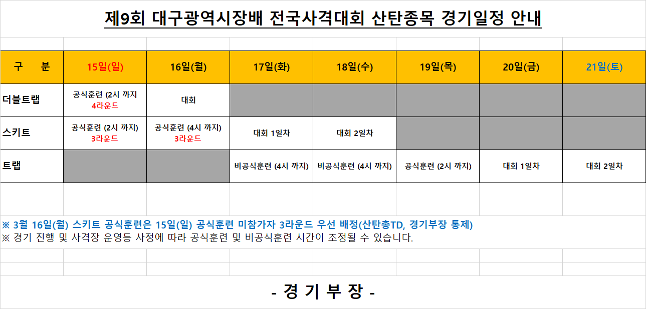 | Á¦¸ñ | Á¦9ȸ ´ë±¸±¤¿ª½ÃÀå¹è Àü±¹»ç°Ý´ëȸ »êźÁ¾¸ñ °æ±âÀÏÁ¤ ¾È³» | ||||