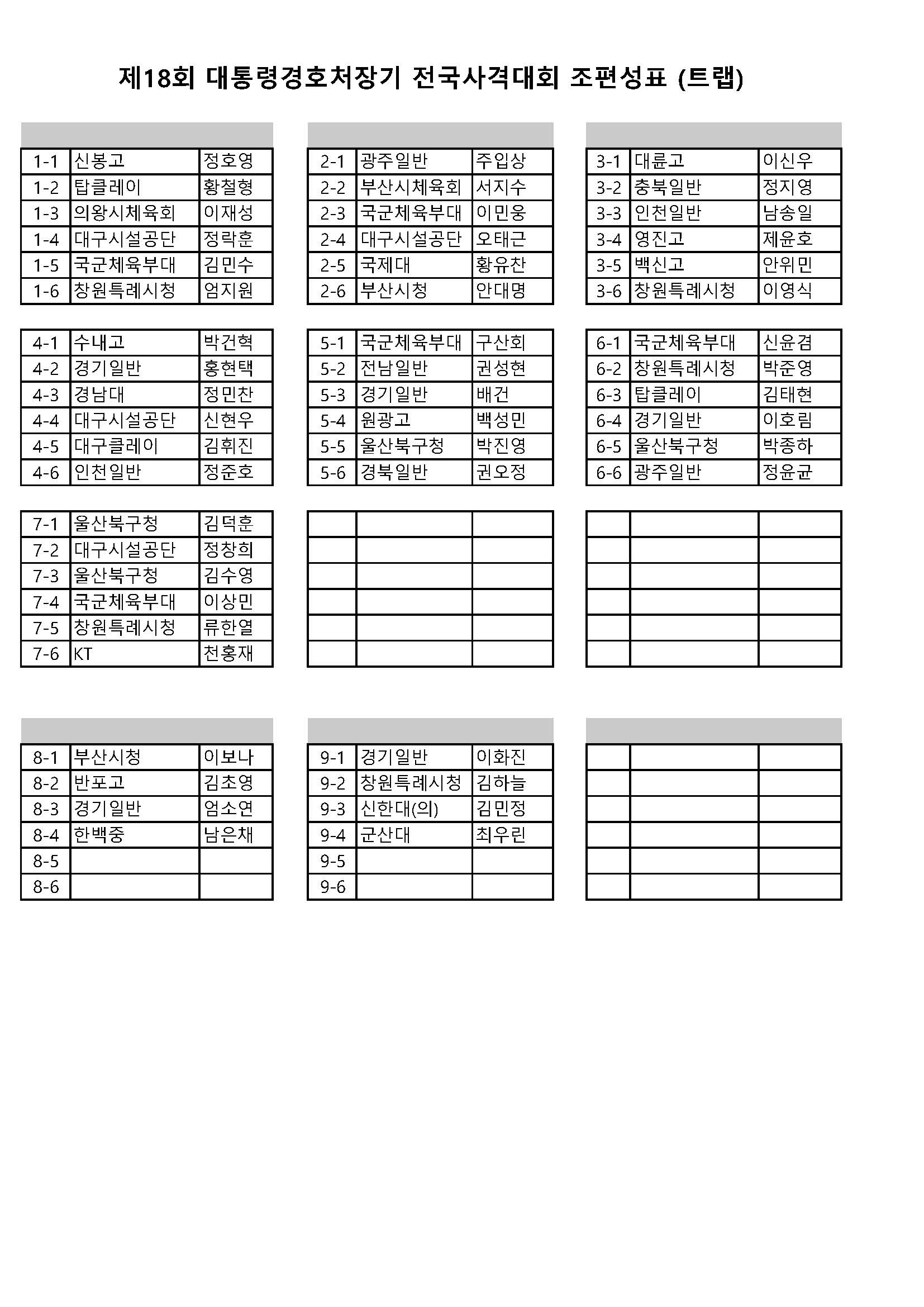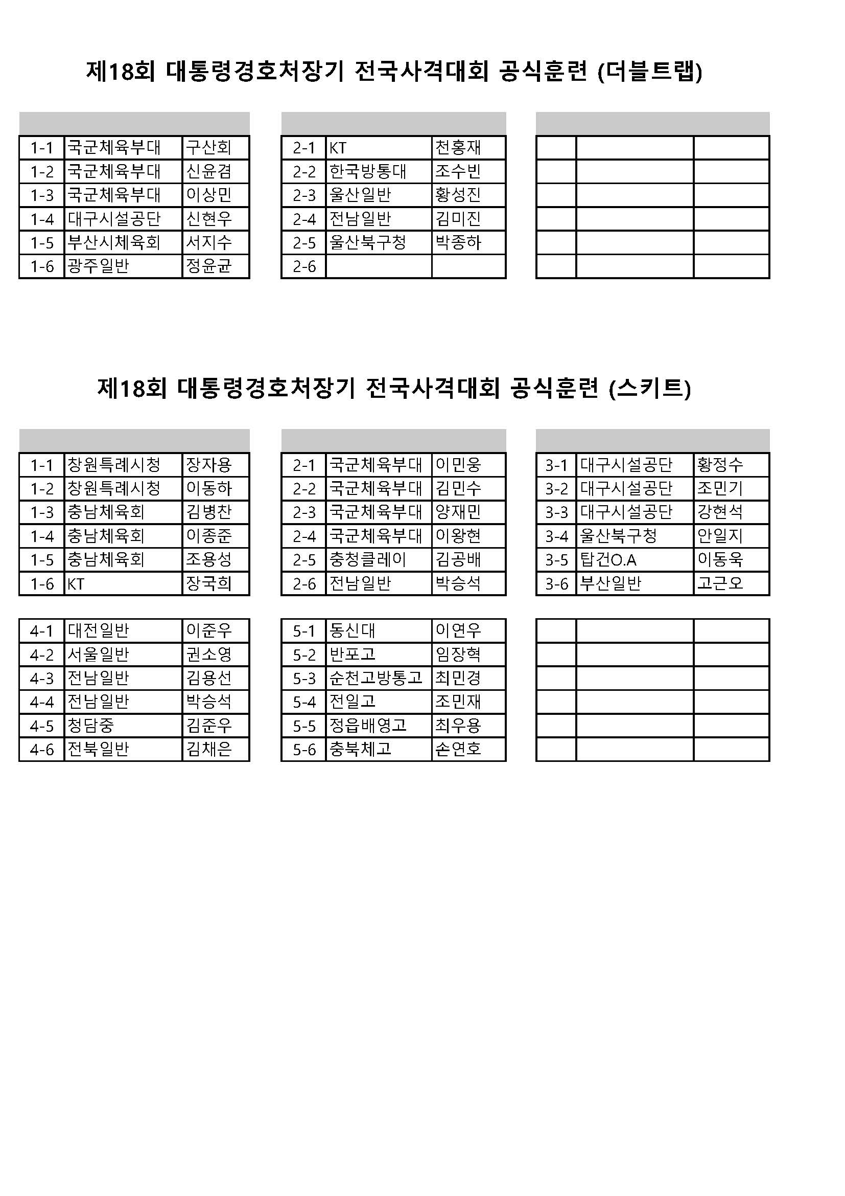 ![]() ![]() ![]() ![]() Á¦18ȸ ´ëÅë·É°æÈ£Ã³Àå±â Àü±¹»ç°Ý´ëȸ »êźÃÑ Á¶Æí¼º ¹× °ø½ÄÈÆ·Ã Æ®·¦ Á¶Æí¼º º¯°æ(¼ø¹øº¯°æ ¹× ´©¶ôÀοø Ãß°¡) |